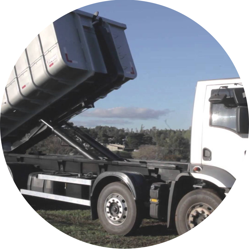 Utilizamos os seguintes equipamentos para atender os clientes: caminhões rollon, caçambas de